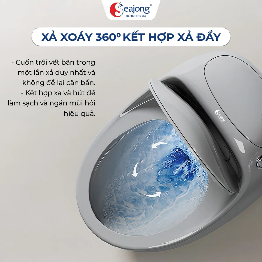 Bồn cầu liền khối men sứ kháng khuẩn Seajong SJ-BC0198BG là dòng bồn cầu liền khối cao cấp với thiết kế thanh thoát, hiện đại, phù hợp hoàn hảo cho không gian phòng tắm sang trọng. Sản phẩm được trang bị công nghệ xả tiên tiến kết hợp lớp men Nano bạc kháng khuẩn, vừa đảm bảo vệ sinh tối ưu vừa mang lại trải nghiệm sử dụng tiện nghi, an toàn cho sức khỏe.