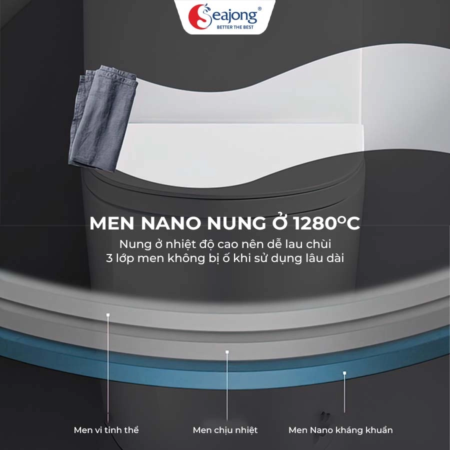 Nhờ lớp men Nano bạc kháng khuẩn và công nghệ nung sứ hiện đại, bồn cầu Seajong SJ-BC0141B có khả năng chống bám bẩn, chống xước và giữ cho bồn cầu luôn sạch sẽ và sáng bóng.