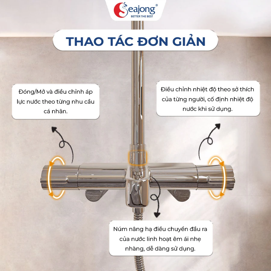 Sen cây tắm đứng cao cấp Seajong SJ-SC0073B-SR với chất liệu đồng mạ crom, PVC, và lõi trộn SEDAL mang lại chức năng cố định nhiệt độ, giúp bạn tận hưởng những giây phút tắm mưa hay tắm thường thư giãn. Khám phá chi tiết bên dưới ngay.
